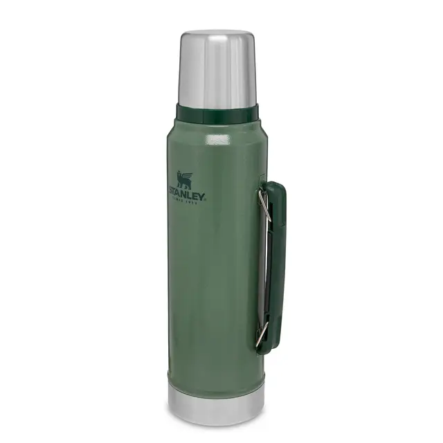 Stanley Classic Vacuum Insulated Bottle 1 L:Volum: 1 literVekt: 810 gramMål: 117 x 94 x 358 mmIsolasjon: Doble vegger og vakuumMateriale: 18/8 rustfritt stål